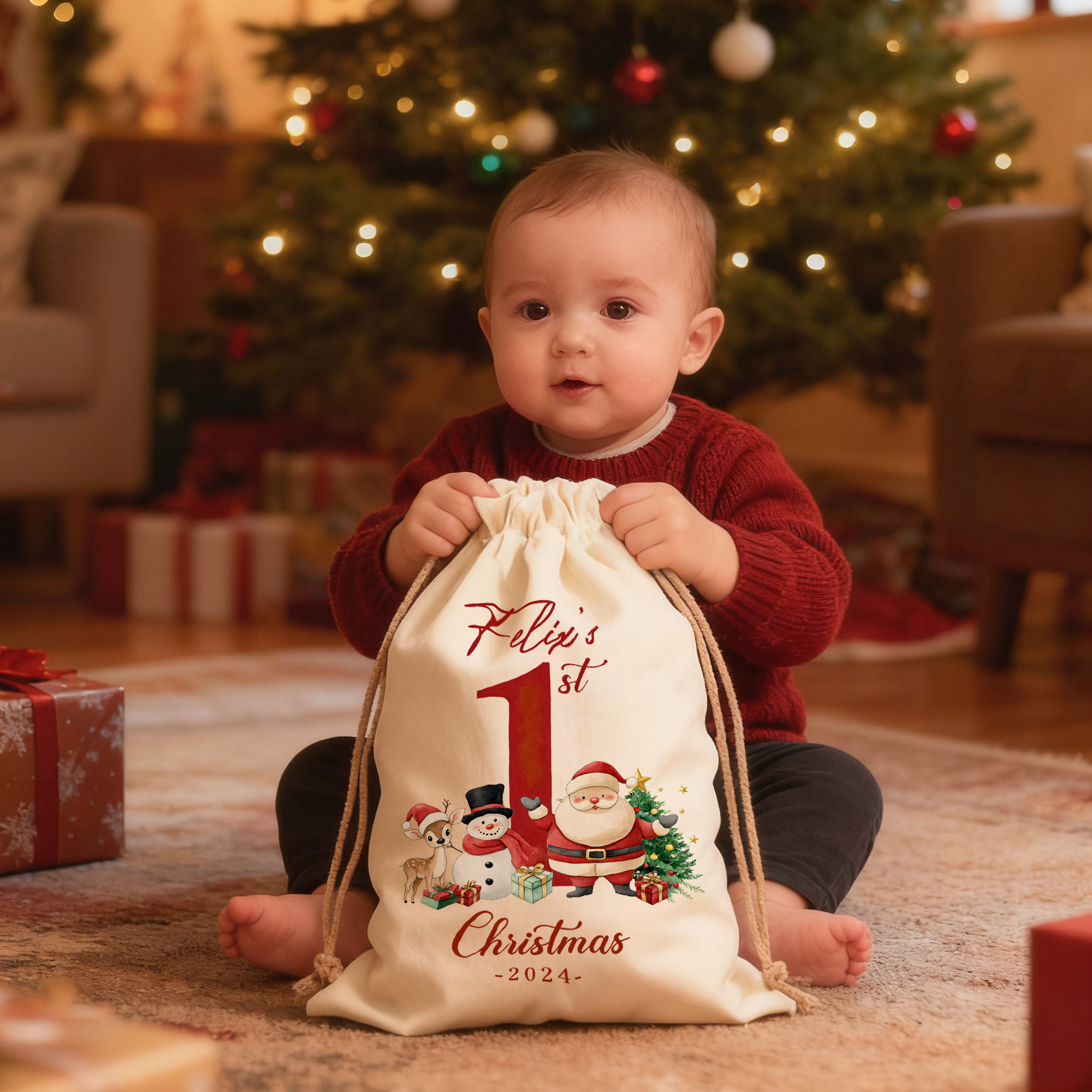 Personalized Baby’s Name - Add a custom touch by personalizing the bag with your baby’s name and first year. This thoughtful detail transforms the sack into a cherished keepsake for new parents and families, making Christmas morning extra special for your little one.